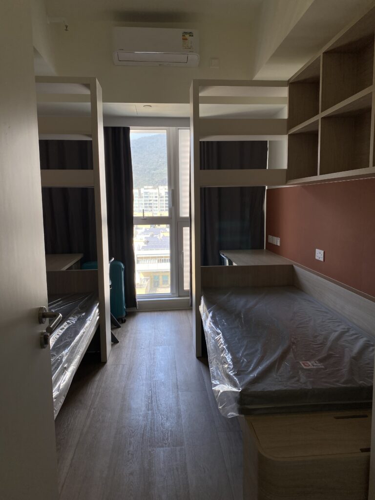 Asuin vaihdon ajan yliopiston asuntolassa, jossa jaoin huoneen yhden henkilön sekä vessan ja suihkun kolmen henkilön kanssa. Kävi hyvä tuuri ja kouluun oli juuri avattu uusi asuntola. Toisaalta tämän myötä esimerkiksi yhteisessä keittiössä ei ollut mitään keittiövälineitä valmiina. Olen tyytyväinen asumiseeni, sillä hinta oli Hongkongin kalliiseen vuokratasoon nähden edullinen ja koulumatkat olivat lyhyet. Oma asumiseni maksoi vaihdon ajalta vähän reilut 2000 €, kun Hongkongissa yhden kuukauden vuokra on helposti noin 1000 €. Ennalta jännitin huoneen jakamista vieraan ihmisen kanssa. Omasta tilasta luopumista. Vaihteluna yksin asumiselle nautin kuitenkin arjen jakamisesta muiden kanssa.